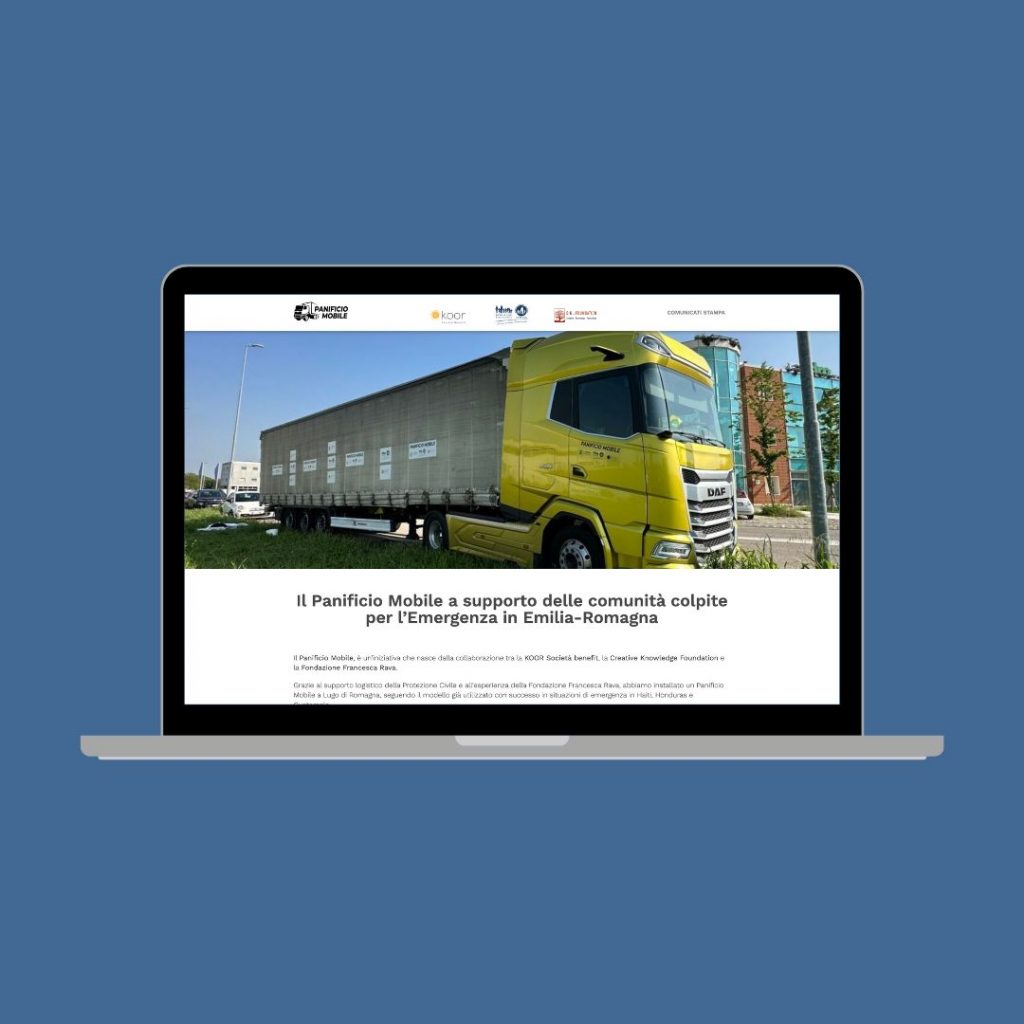 • Panificio Mobile Project: I developed a site for the Panificio Mobile initiative, an emergency response project supporting communities affected by flooding in Emilia-Romagna on May 16 and 17, 2023. This site was built in just one day and updated continuously every day. The Panificio Mobile aimed to distribute free bread and baked goods to flood-affected populations and supplied nine Civil Protection canteens.